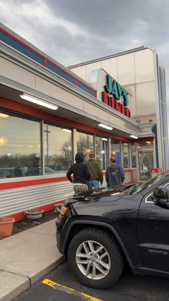 Then we drove across the featureless NY Thruway (picture film fast-forwarding montage) and arrived at Jay’s!